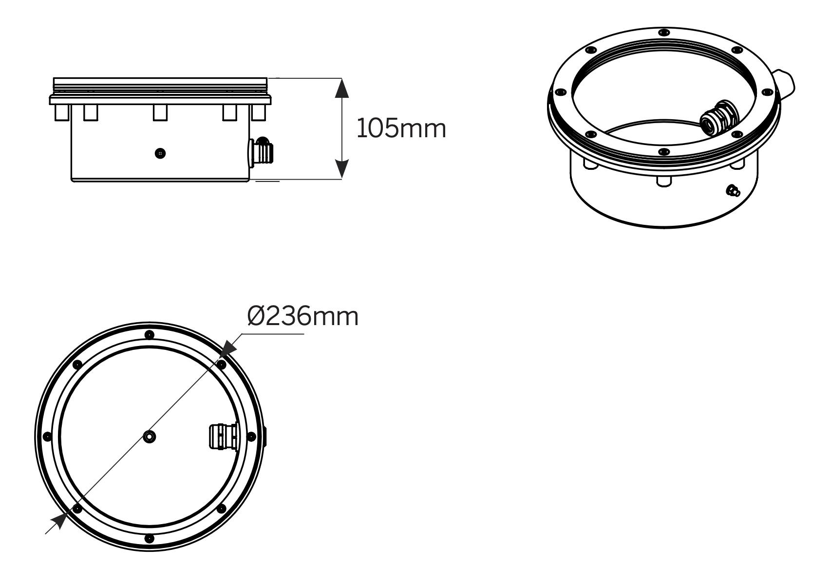 Pour plus de détails sur les profondeurs spécifiques, l’épaisseur du carrelage, se référer aux instructions d’installation du luminaire et du boitier.