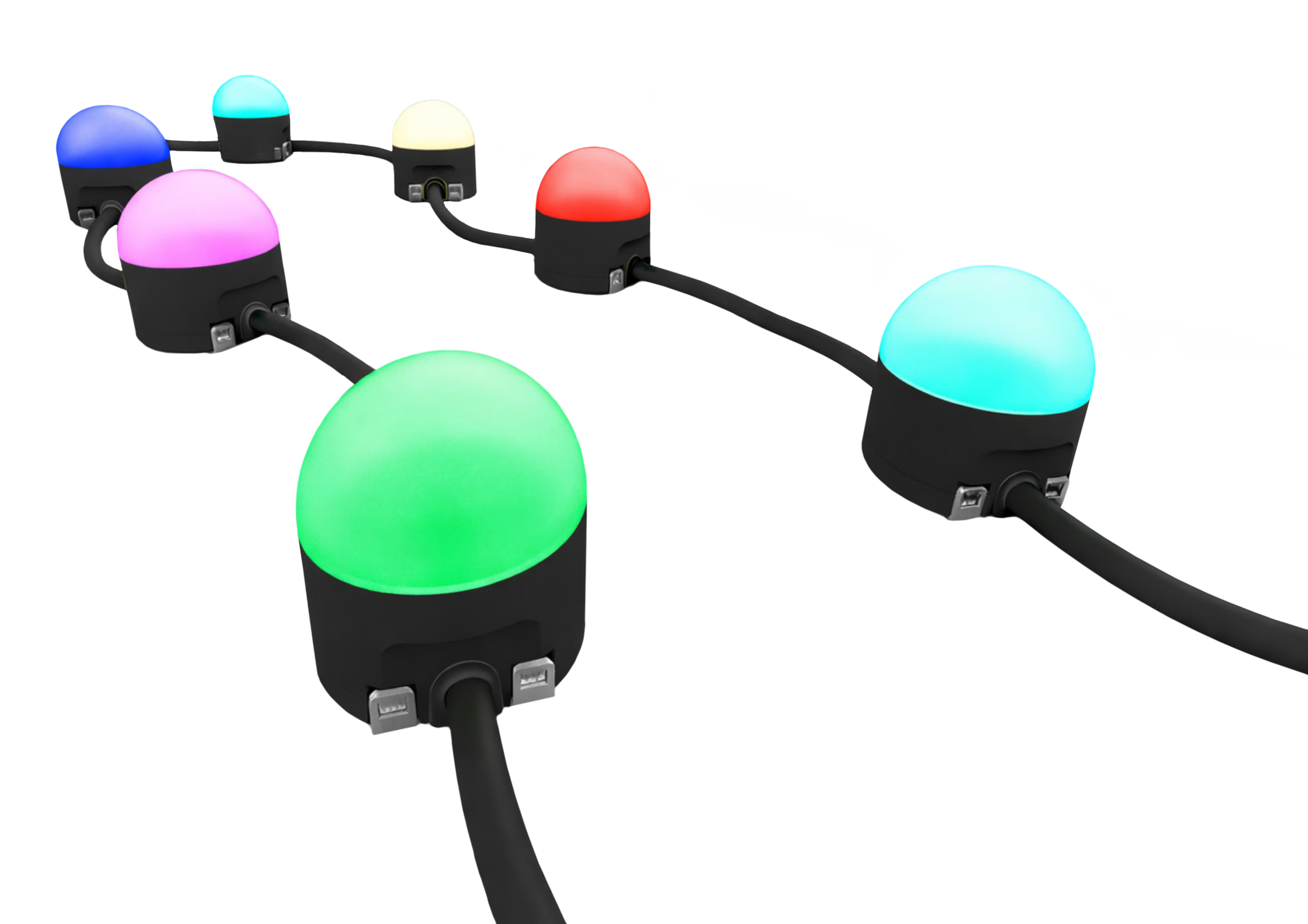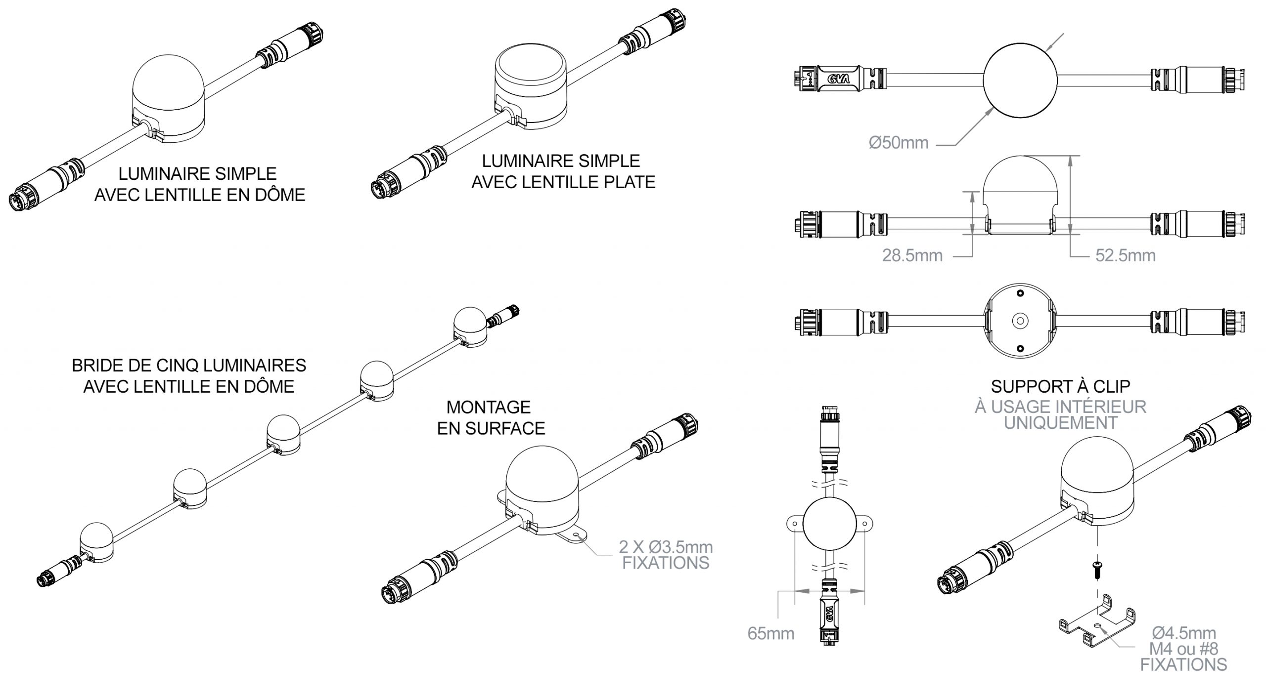 - Câblage d’alimentation et de données intégré pour une connexion de bout en bout via des connecteurs étanches à verrouillage par pression.
