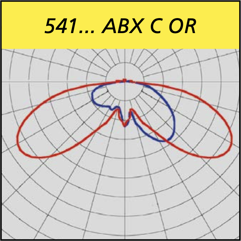 Répartition lumineuse: faisceau asymétrique extrêmement large (ABX) ou faisceau circulaire symétrique (R). Couverture givrée pour limiter l’éblouissement.