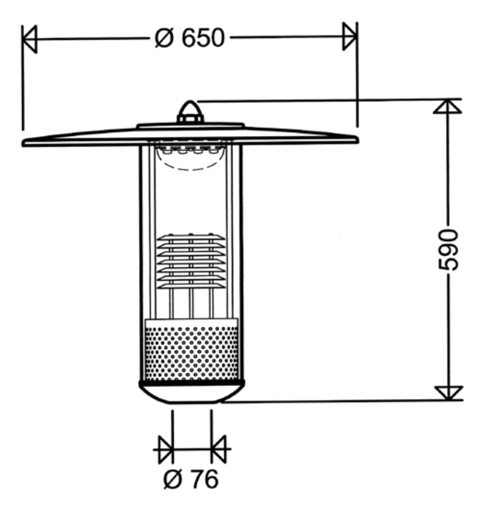 Mounting system: 3 non-corrossive steel locking screws serve for fixation on stra- ight pole end Ø of 76mm. Adapter (RZ 1) for pole end Ø of 60mm (see accessories).