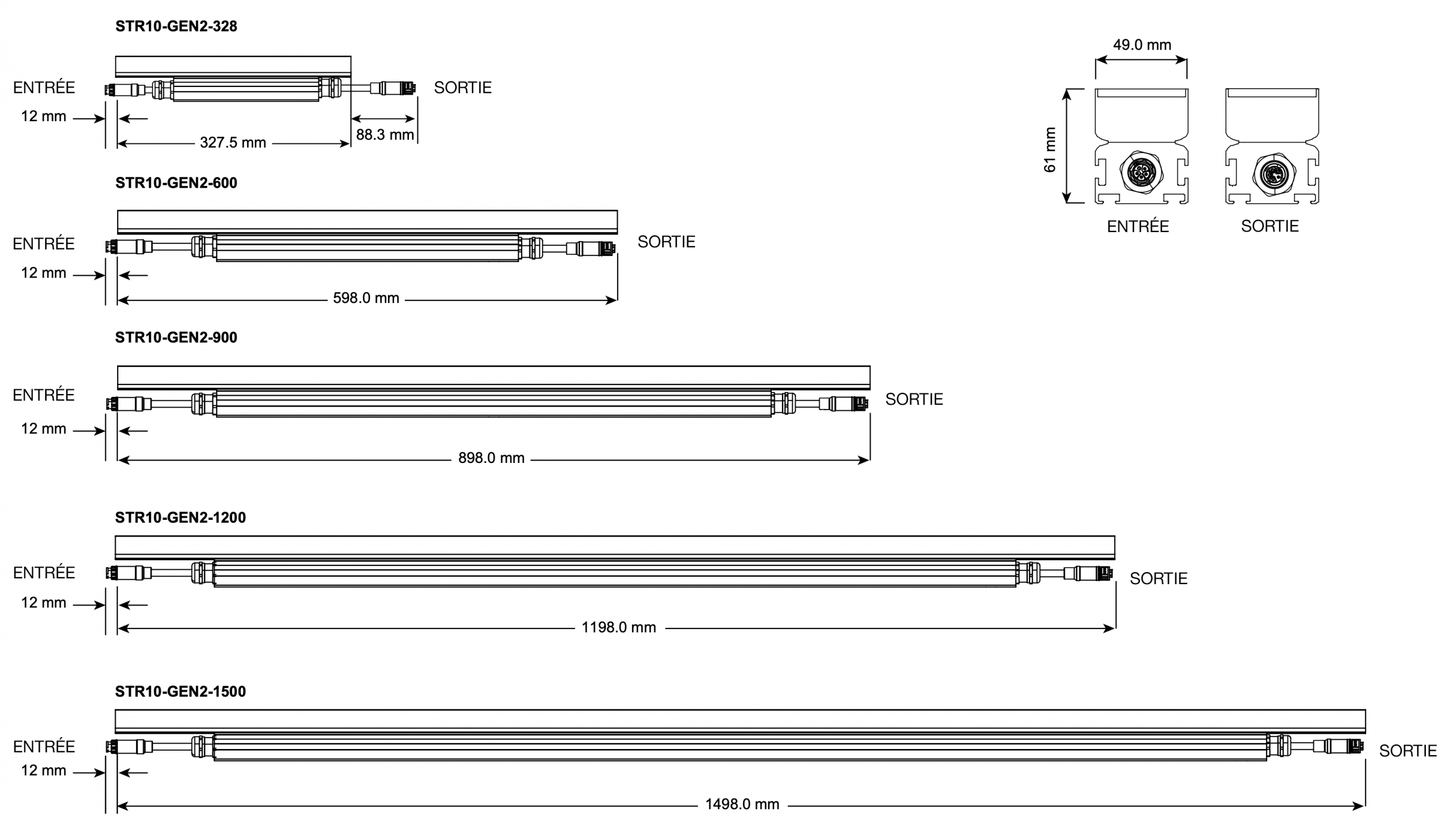 LONGUEUR : 300, 600, 900, 1200 ou 1500 mm